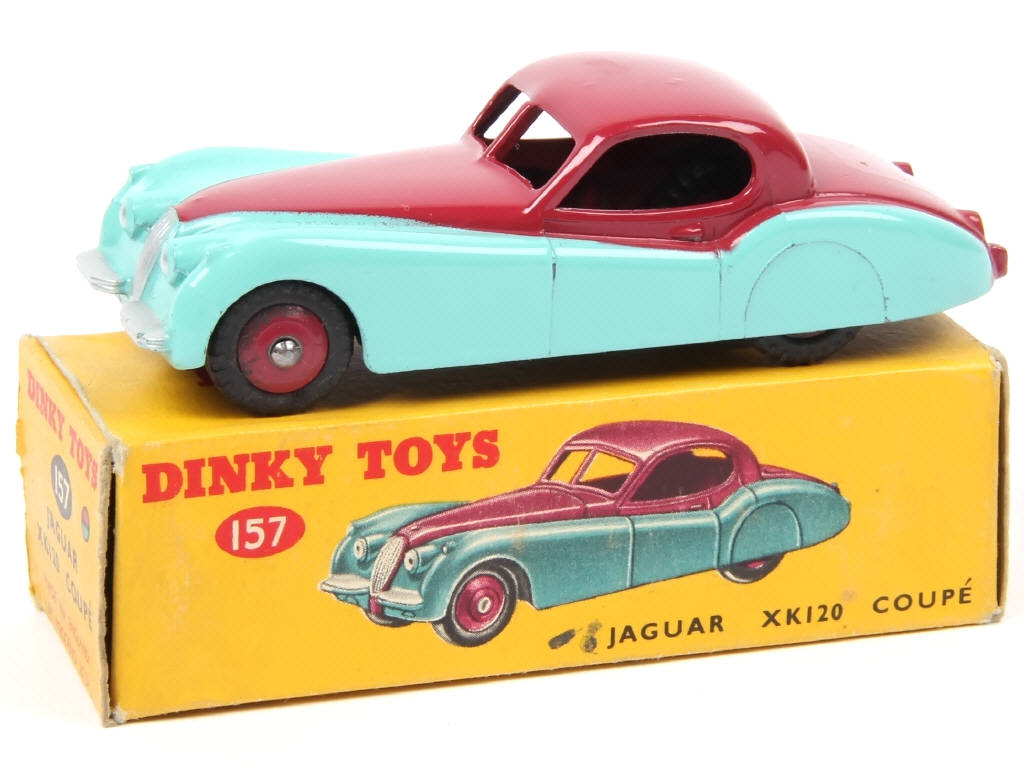 DINKY TOYS (GB) 157 JAGUAR XK 120 coupé turquoise & framboise