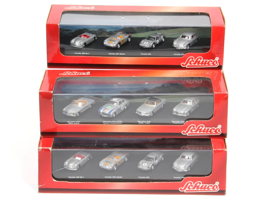 petite échelle - comprend les modèles : PORSCHE & MERCEDES - quelques accrocs sur les boites (dont une avec fêlure sur le couvercle)