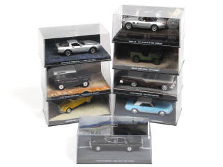 collection 'JAMES BOND' - avec dioramas - miniatures reproduisant notamment les modèles : BMW, LAND ROVER, FORD & JEEP WILLYS - tiré notamment des films : 'OCTOPUSSY', 'OPERATION TONNERRE' & 'MEURS UN AUTRE JOUR'