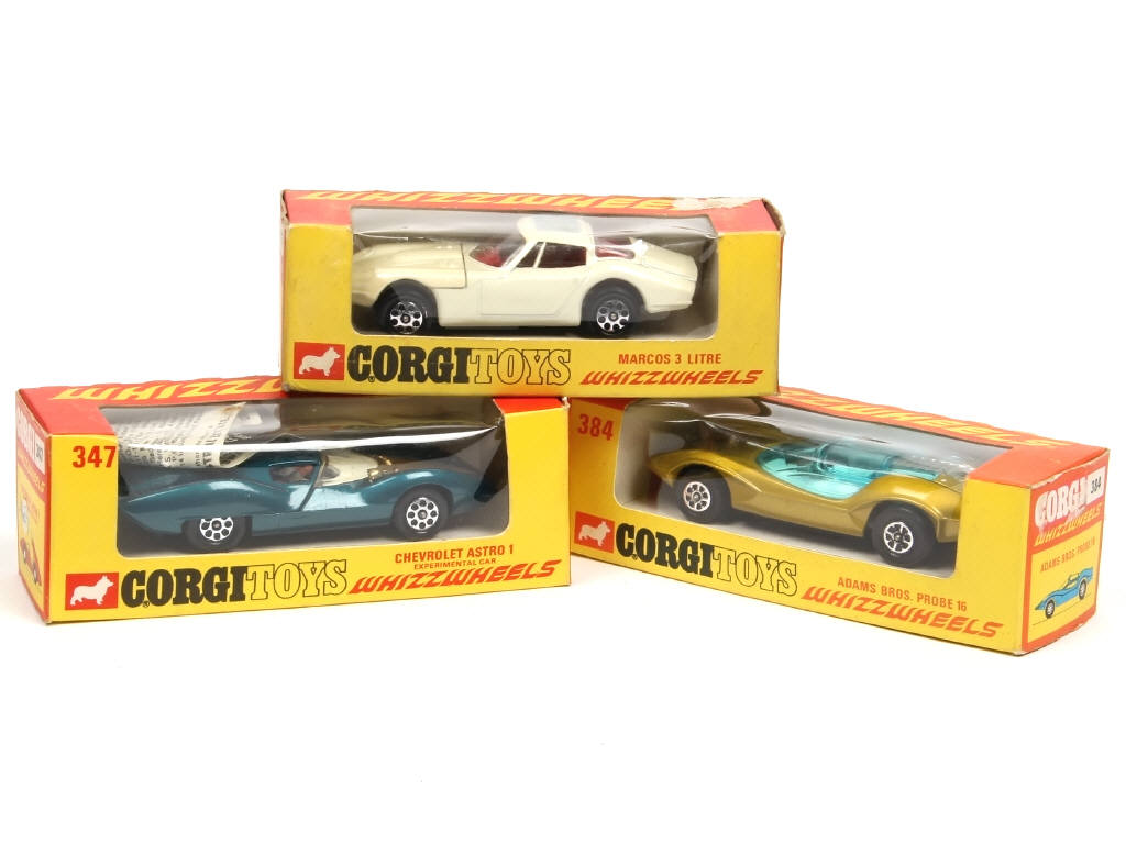 comprend : CHEVROLET ASTRO I, MARCOS 3L & ADAMS BROS. PROBE 16 - un petit manque de papier sur une boite