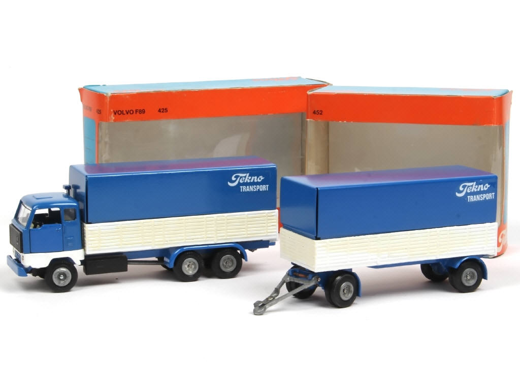 on y joint une remorque 'TEKNO TRANSPORT' (référence 452 - 'A.b') - ridelles plus ou moins vernissées