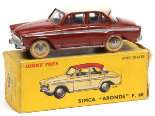 DINKY TOYS (FRANCE) 544 SIMCA ARONDE P60 (version avec jantes convexes) brique, toit beige rosé
