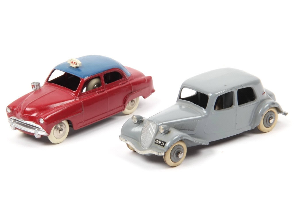 comprend : CITROËN 11 BL (petits décalques ajoutés, légères traces d'oxydation sur les jantes) & SIMCA ARONDE TAXI (traces d'humidité sur la carrosserie) - pneus plus ou moins séchés & craquelés
