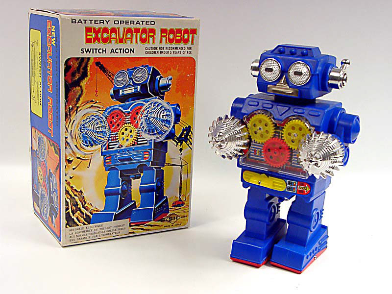 hauteur 25 cm - en action, le robot avance tandis que ses engrenages & ses fraiseuses tournent - plusieurs positions de fonctionnement - mécanismes fonctionnent - avec cales de boîte - in action, the robot moves forward as his gears & drills rotate - multi-position switch - in working condition - with box inserts