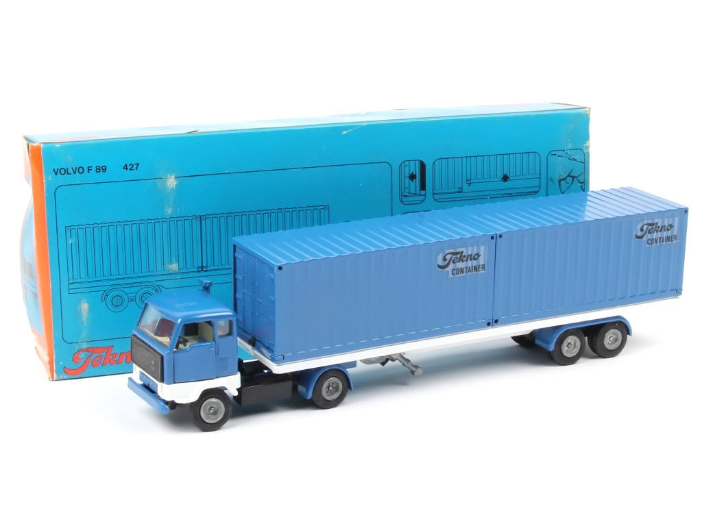 TEKNO (PAYS-BAS) 427 VOLVO F 89 Semi-remorque plateau porte-containers 'TEKNO CONTAINER' bleu & blanc