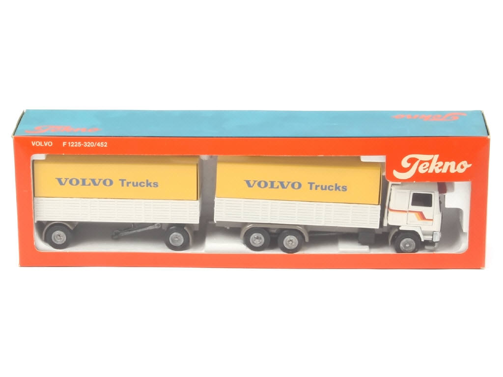 TEKNO (PAYS-BAS) VOLVO F1225 Plateau à ridelles bâché avec remorque bâchée 'VOLVO TRUCKS' blanc & jaune