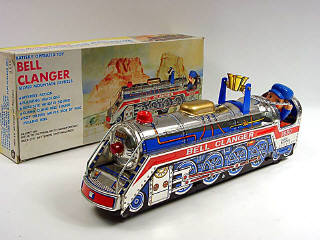 MASUDAYA TOYS Co. (JAPON) 3850 BELL CLANGER LOCO bleu métal, rouge & argent