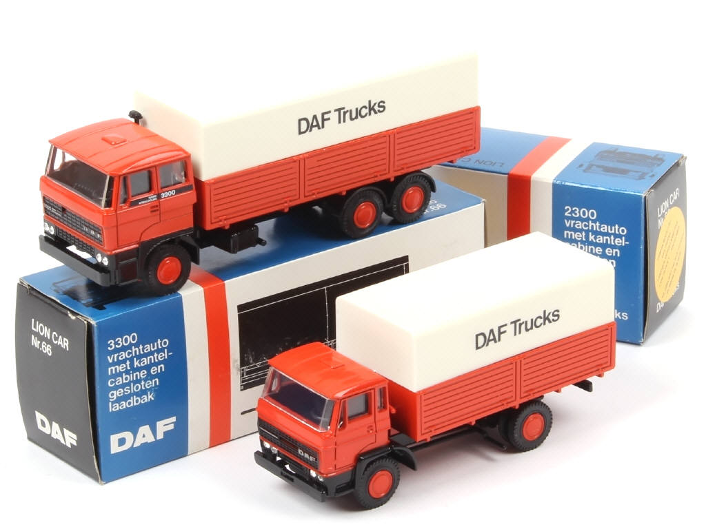 LION-CAR (PAYS-BAS) Ensemble de 2 camions DAF plateau à ridelles bâchés 'DAF TRUCK'