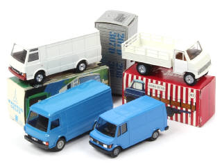miniatures reproduisant les modèles : IVECO, HANOMAG, MAGIRUS & MERCEDES - on y retrouve les marques : RW MODELL (état 'C' avec retouches), CURSOR MODELL & CONRAD - quelques manques de papier sur certaines boîtes