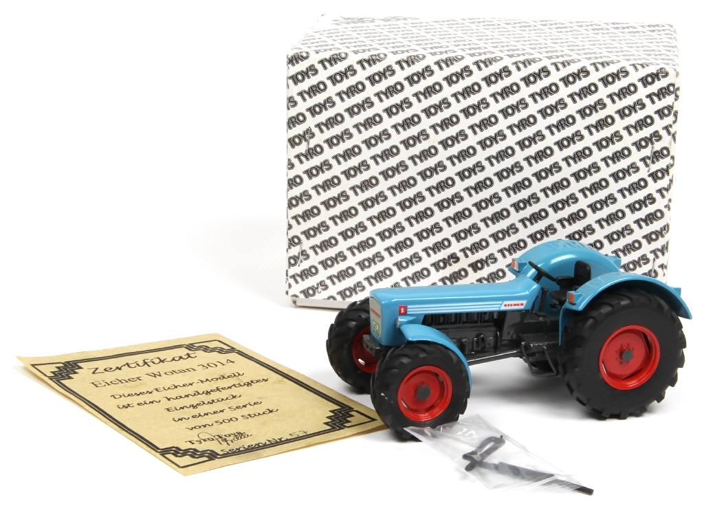 TYRO TOYS (ALLEMAGNE) EICHER WOTAN 3014 Tracteur agricole bleu, jantes rouges