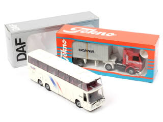 comprend : DAF SBR 3000 autocar & SCANIA 143M semi-remorque porte container