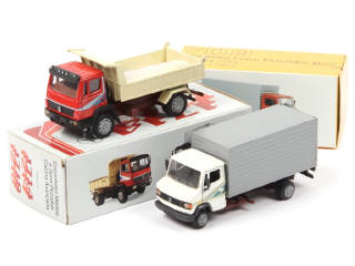 comprend les modèles : 1214 benne basculante (avec sachet d'accessoires) & 912 fourgon