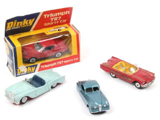 on y retrouve les marques : CORGI TOYS, DINKY TOYS (un exemplaire en état 'B'-'c' avec carrosserie légèrement décolorée) & LONE STAR - avec manques, transformations & parties cassées