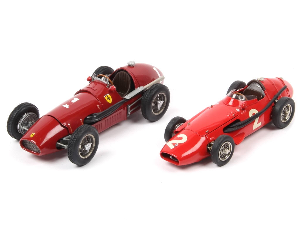 échelle 1/24ème - avec éléments amovibles - miniatures reproduisant les modèles : MASERATI & FERRARI (saute vent légèrement déformé avec vitre manquante, numéro de compétition incomplet) - on y retrouve les marques : REVIVAL & WESTERN MODEL