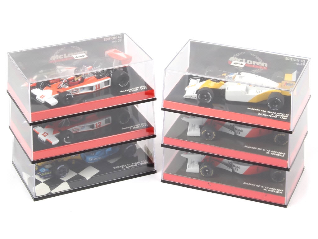 miniatures reproduisant les modèles : RENAULT & Mc LAREN (5 exemplaires)