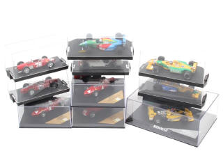 miniatures reproduisant notamment les modèles : FERRARI, BENETTON & RENAULT - on y retrouve notamment les marques : BRUMM, ONYX & QUARTZO