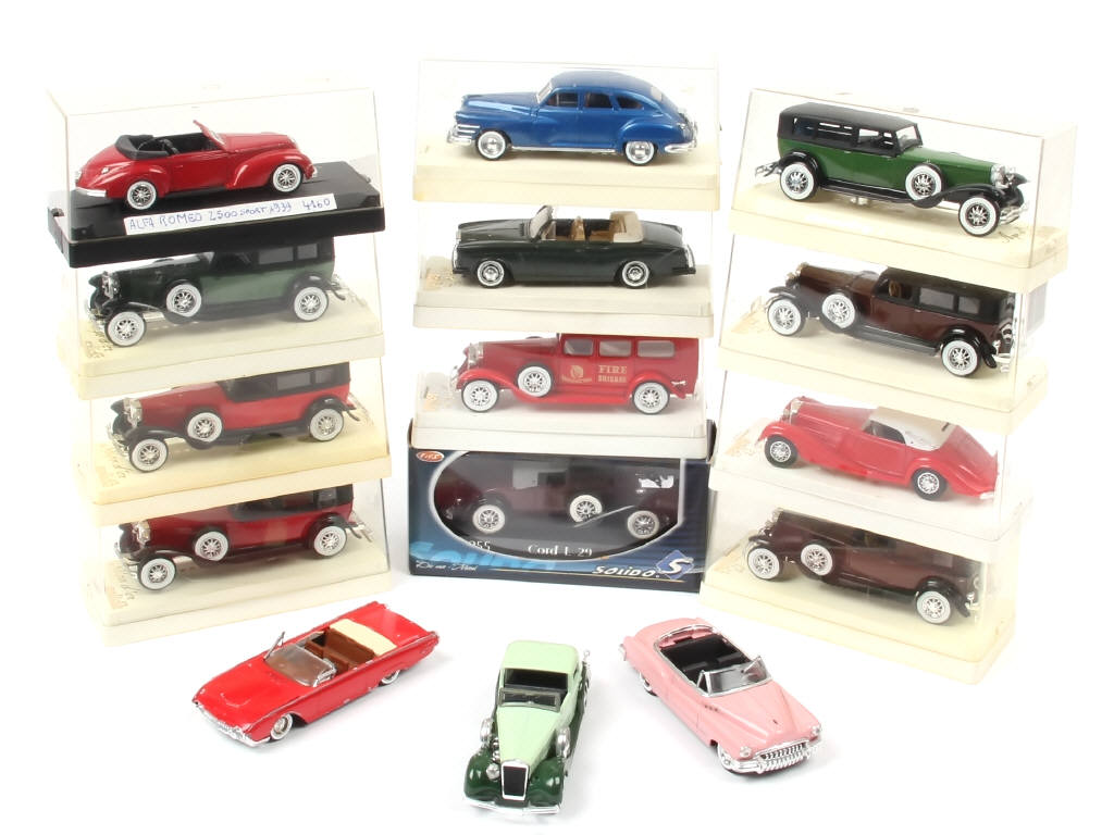 miniatures reproduisant notamment les modèles : DUESENBERG, DELAGE & ALFA ROMEO - 3 exemplaires sans boîte dont un en état 'E' - avec manques & éléments cassés plus ou moins importants