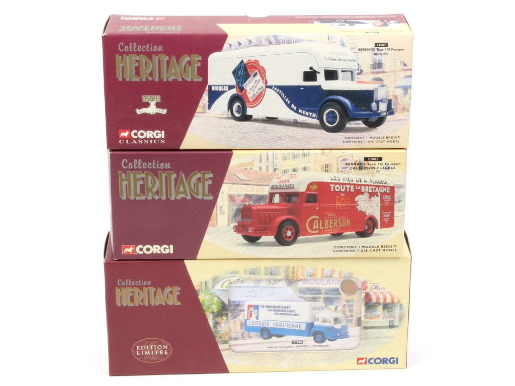 série 'HERITAGE' - miniatures reproduisant les modèles : SAVIEM & BERNARD (un rétroviseur cassé sur un exemplaire) - avec accessoires & certificats