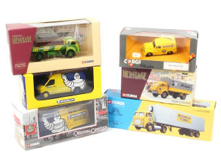miniatures reproduisant notamment les modèles : MORRIS, RENAULT, LEYLAND & SAVIEM - avec accessoires & certificats - on y joint un MERCEDES SPRINTER de la marque ELIGOR - 5 exemplaires 'MICHELIN'