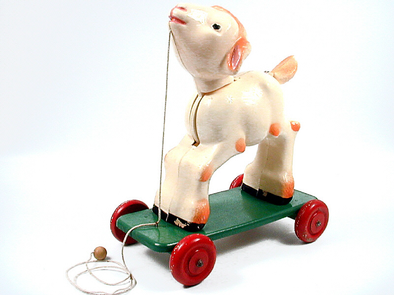 DIVERS (FRANCE) Agneau sur plateau à roulettes crême, vert & rouge