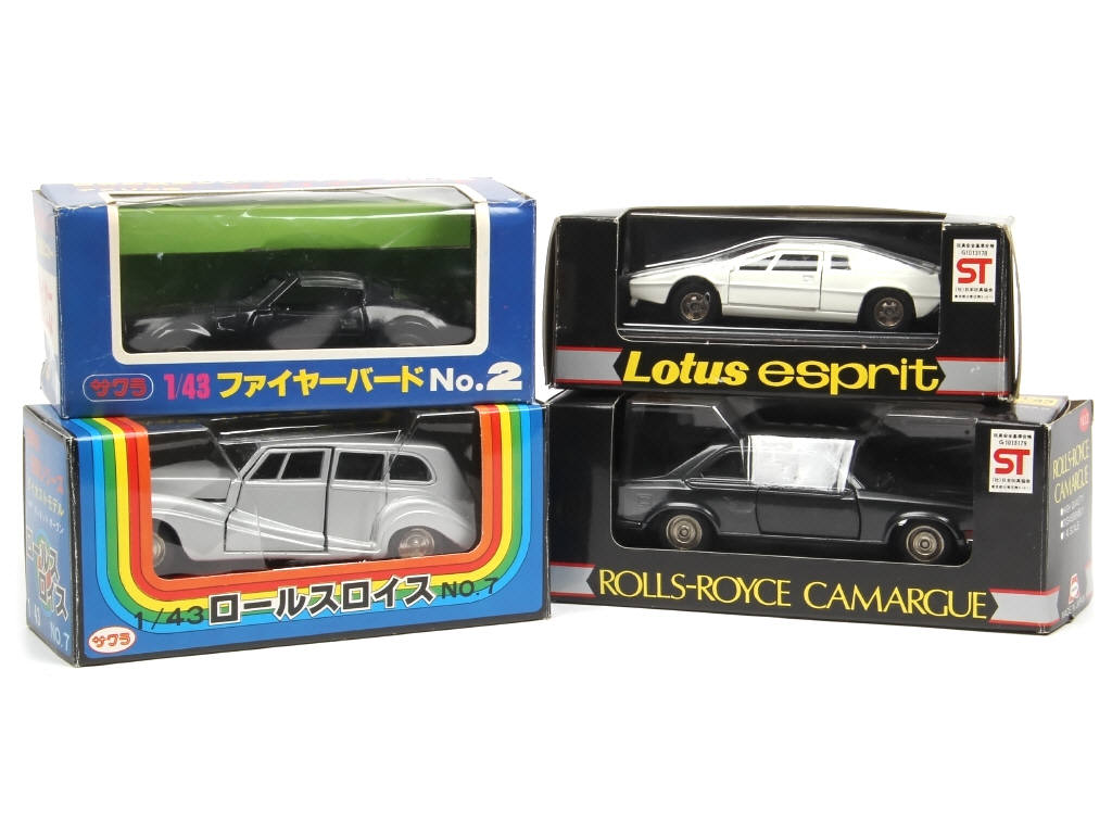 comprend : ROLLS ROYCE CAMARGUE, SILVER WRAITH, LOTUS ESPRIT & PONTIAC FIREBIRD - on y retrouve les marques : K.K SAKURA & ASAHI