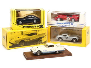comprend : 250 GT 'SWB', 250 MM 1952, 250 TR (manque pare-brise) & 410 S.A SUPERFAST I (petites fêlures sur le pare-brise) - on y retrouve les marques : PROGETTO K & IDEA 3 - boites en état 'b'