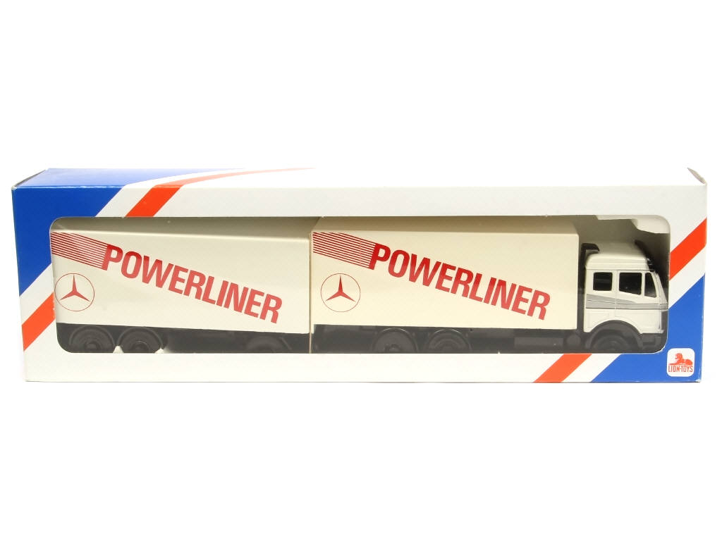 LION-TOYS (PAYS-BAS) MERCEDES Camion-fourgon avec remorque 'POWERLINER' blanc, noir & rouge