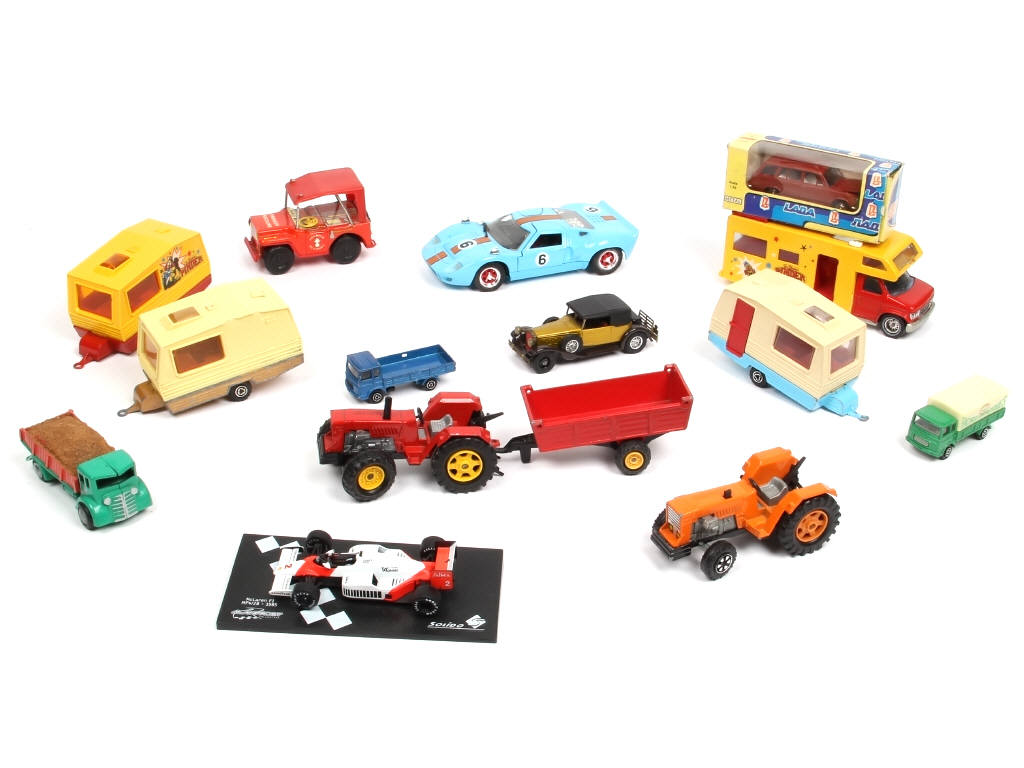 on y retrouve notamment les marques : MAJORETTE (majoritairement), SOLIDO & MATCHBOX - avec manques & parties cassées - quelques carrosseries encrassées