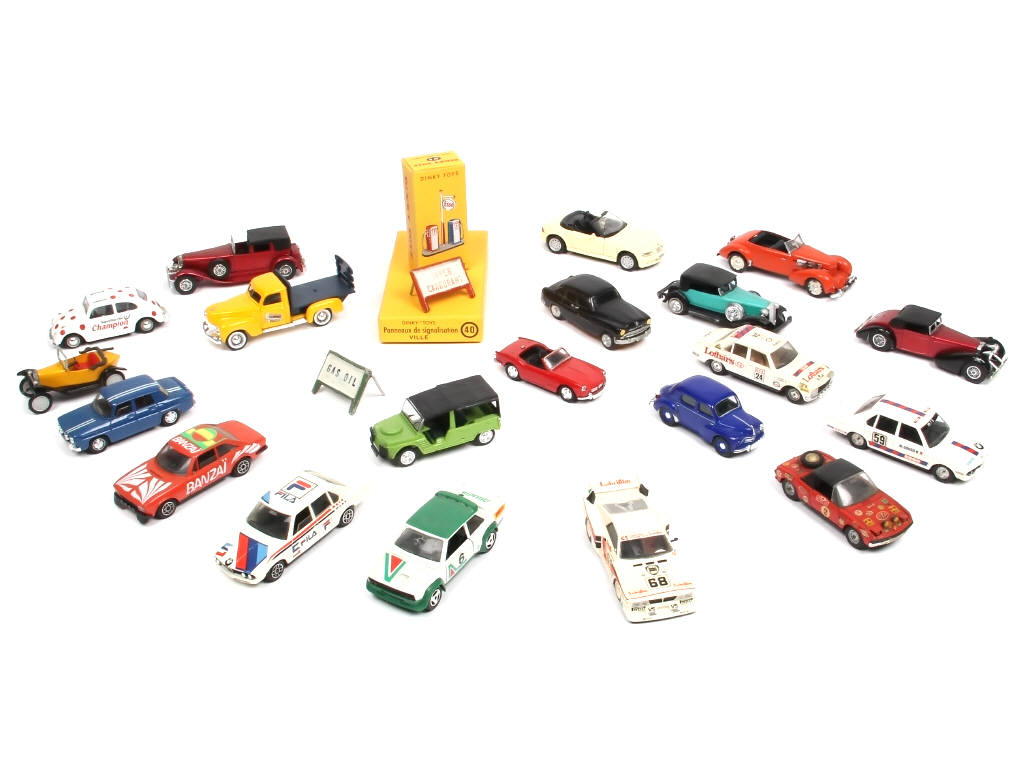 on y retrouve notamment les marques : EDITIONS ATLAS, SOLIDO, NOREV, TOMTE, COFALU, MATCHBOX & DUGU - possibilité de petits manques & parties cassées - quelques carrosseries encrassées