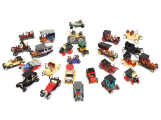 comprend notamment les modèles : DECAUVILLE, PEUGEOT, LANDAULET, FORD, CITROEN & HISPANO SUIZA - on y retrouve notamment les marques : MATCHBOX, SAFIR, CLE, JMK & MINIALUXE - avec manques & parties cassées - quelques carrosseries encrassées