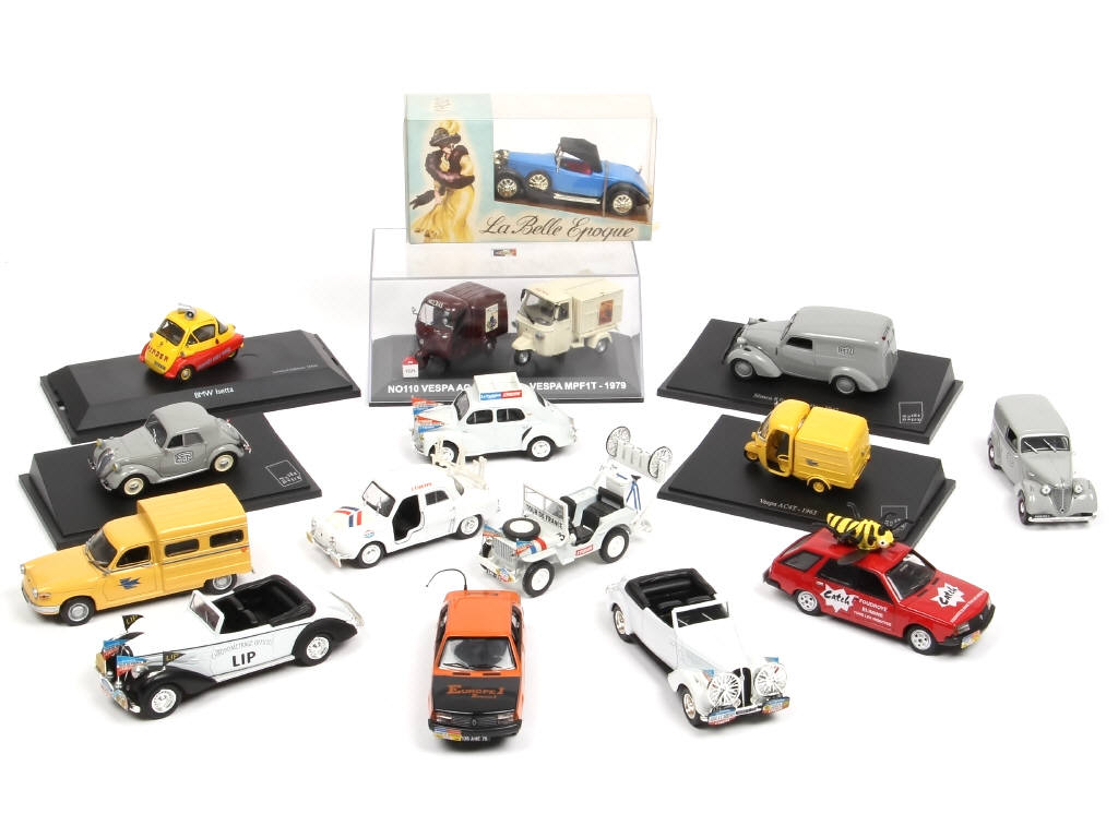 on y retrouve notamment les marques : CLE, NOREV, UNIVERSAL HOBBIES, NOSTALGIE & SCHUCO (édition limitée) - avec petits manques & parties cassées