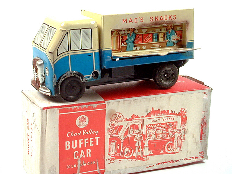 CHAD VALLEY (GB) 10134 Camion-buffet 'MAC'S SNACK' en tôle lithographiée bleu & crème