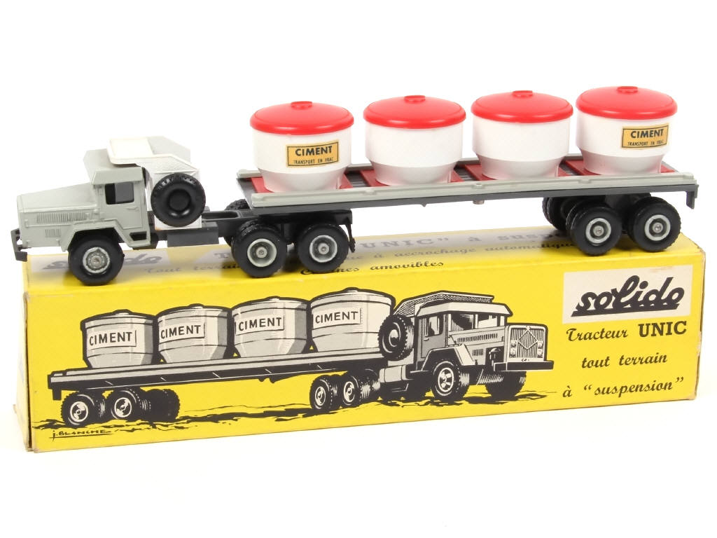 SOLIDO (FRANCE) 301 UNIC Semi-remorque plateau transport de ciment 2 tons de gris