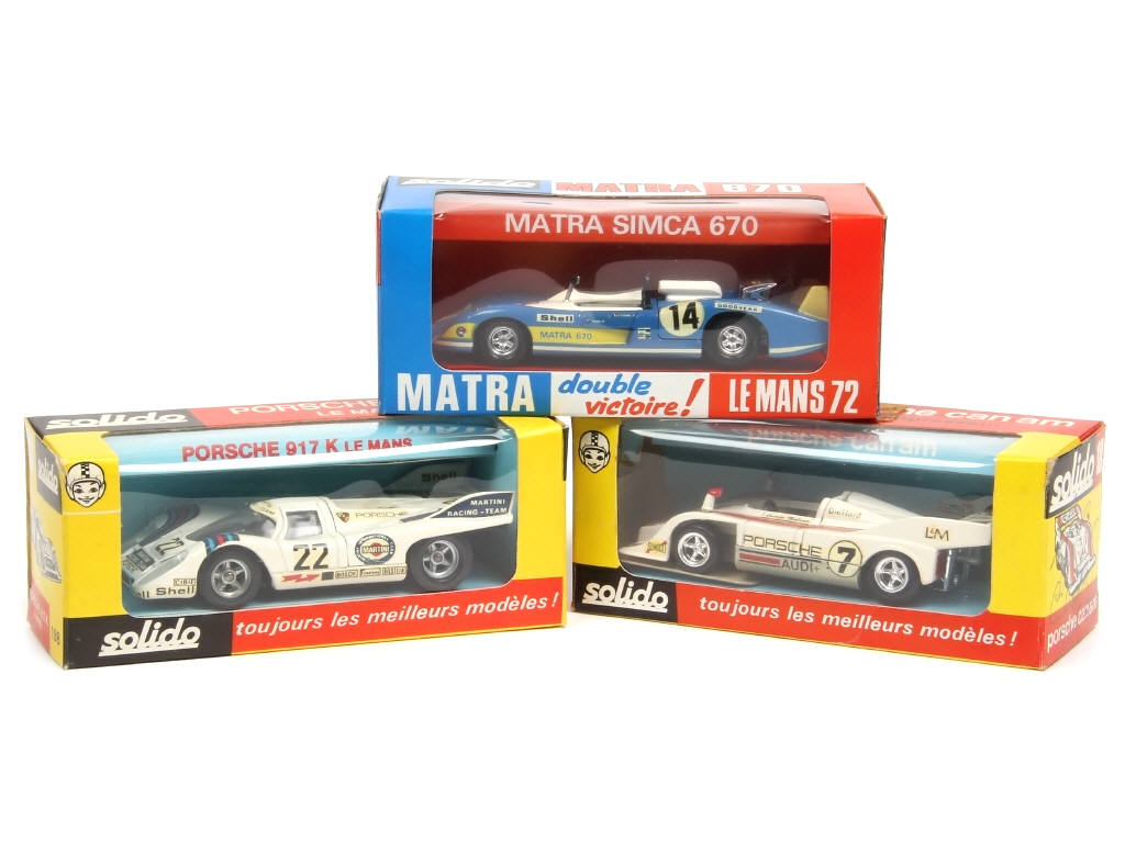 comprend : MATRA 670, PORSCHE 917K & 917/10 CAN-AM - une boite en état 'b' avec annotations au stylo & petits manques de papier