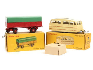 comprend : remorque bâchée (version avec jantes convexes) & caravane (version avec toit strié - avec cale de boite) - pneus plus ou moins séchés - boite en état 'b' avec salissures & légères annotations