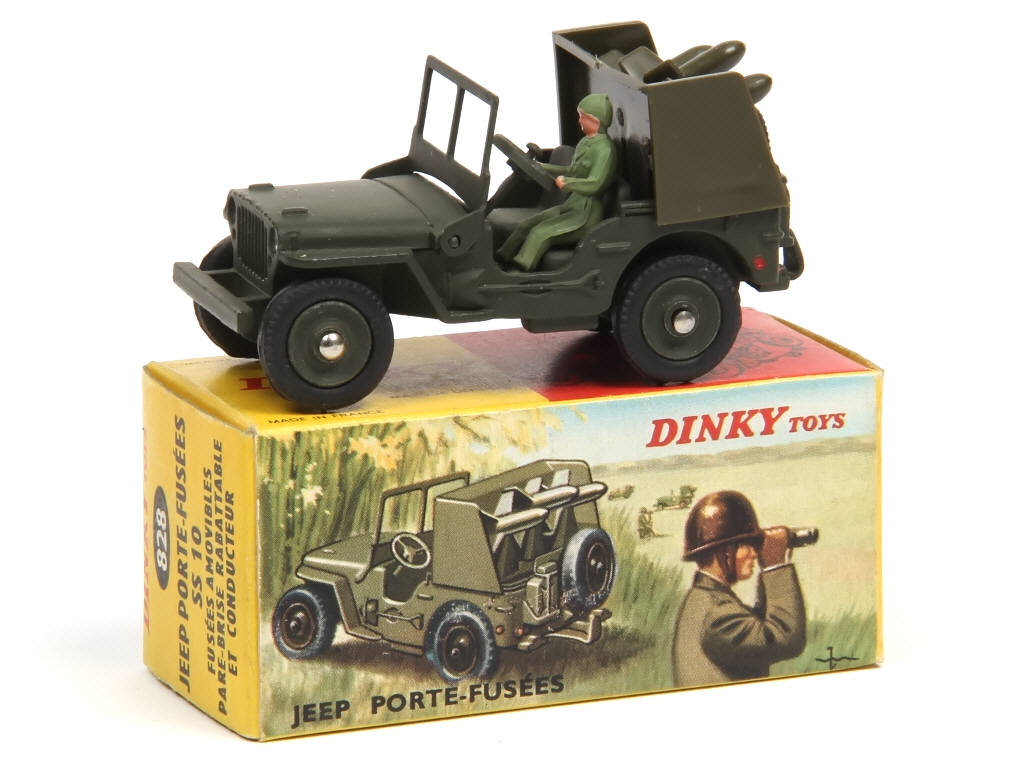 DINKY TOYS (FRANCE) 828 JEEP WILLYS Porte-fusées SS 10 kaki