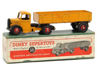 DINKY TOYS (GB) 521 BEDFORD Semi-remorque plateau à ridelles jaune d'or, ailes noires & jantes rouges