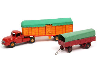 comprend : WILLEME semi-remorque bâché (version avec jantes convexes - fixations de bâche cassées & une manquante sur une porte arrière) & remorque 4 roues (quelques déformations)