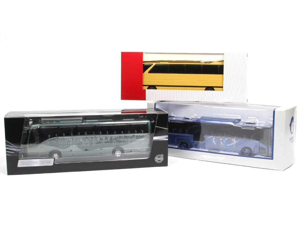 comprend les modèles : IVECO IRISBUS, VOLVO & MERCEDES SHD - on y retrouve notamment les marques : NZG, NOREV & MOTORART