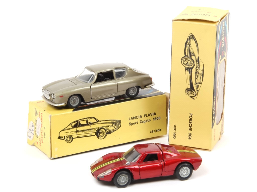 comprend : LANCIA FLAVIA sport ZAGATO 1800 & PORSCHE 904 CARRERA GTS (volant à repositionner - manque de peinture sur le haut d'une portière) - boites en état 'c' sans mousse de protection