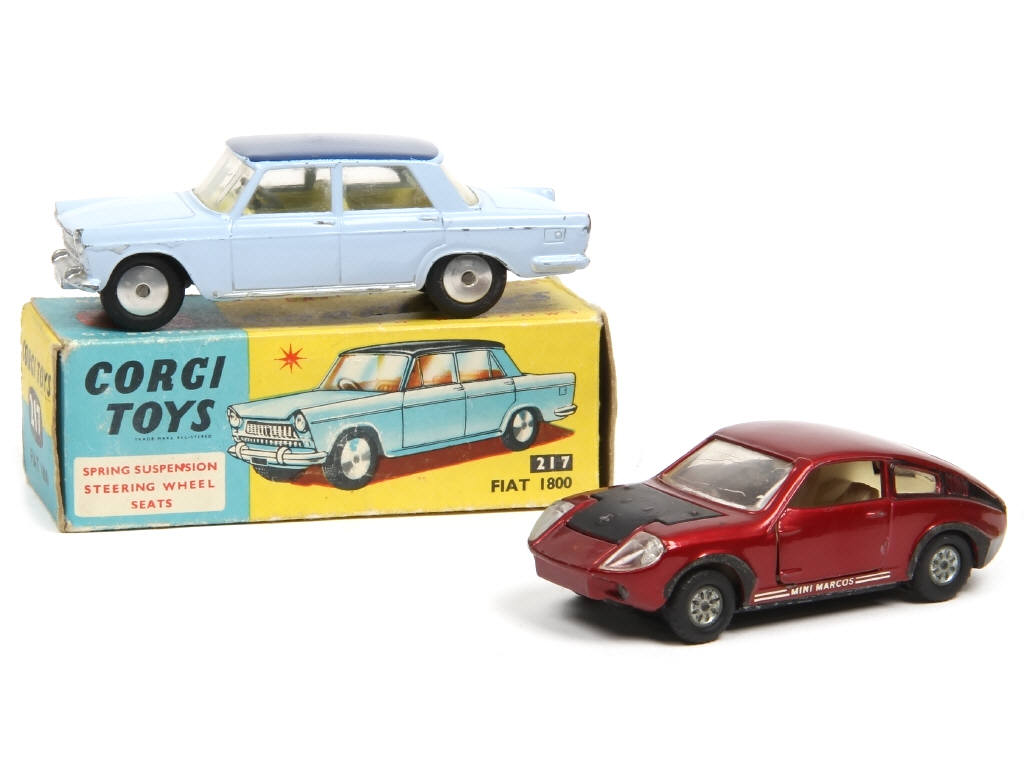 comprend : FIAT 1800 (boite en état 'c') & MINI MARCOS GT 850 (avec parties repeintes) - quelques parties nickelées ternies