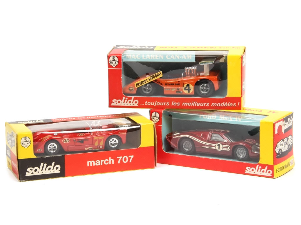 comprend : MARCH 707, FORD MARK IV & Mc Laren CAN-AM - gommettes & traces d'étiquettes sur les boites