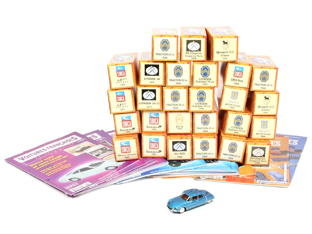 comprend les modèles : CITROEN, PEUGEOT & SIMCA - on y joint 30 fascicules pour classeur présentant les modèles français (en état 'a')
