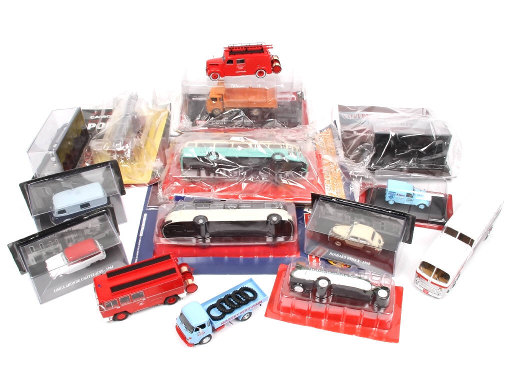 comprend notamment les modèles : HOTCHKISS, PANHARD,PEGASO, SAVIEM & FACEL VEGA - on y retrouve notamment les marques : ALTAYA & HACHETTE - 4 modèles sans boite (possibilité de petits manques sur ceux-ci)