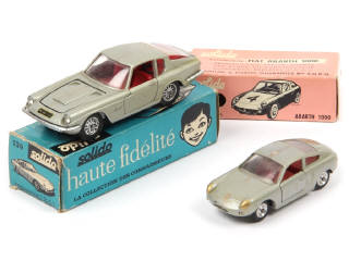 comprend : MASERATI (état 'B'-'c', décalques ajoutés, traces de vernis & de stylo sur la carrosserie, tableau de bord désolidarisé) & ABARTH 1000 (état 'C'-'b', manque numéro de compétition, frottements sur la carrosserie avec traces de stylo, éclats sur le plancher, accrocs sur la boîte)