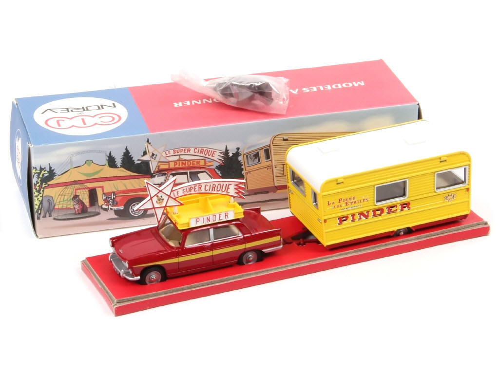 C.I.J./NOREV (FRANCE) 8/00/00 PEUGEOT 404 avec caravane 'PINDER' rouge & jaune