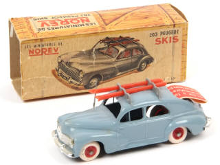 NOREV (FRANCE) 21 PEUGEOT 203 avec skis gris bleu