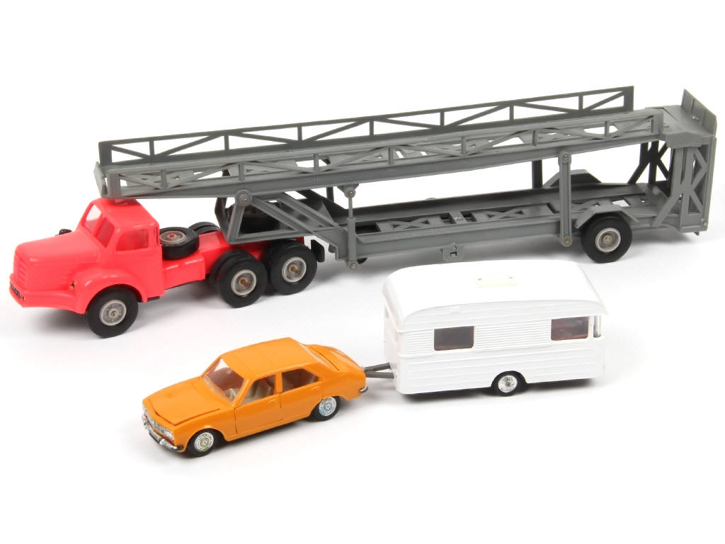 NOREV (FRANCE) 160 PEUGEOT 504 et caravane orange & blanc