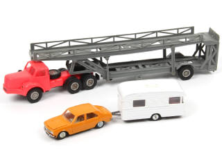 NOREV (FRANCE) 115 BERLIET TBO 15 Semi-remorque porte-autos rose & gris
