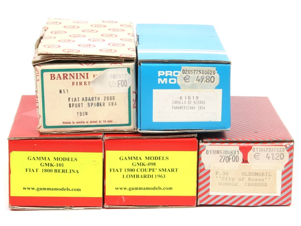semblent complets - comprend : FIAT 1500, 1800, 2000, OLDSMOBIL & CABALLO DE ORO 1954 - avec notices - on y retrouve les marques : GAMMA, BARNINI, TRON & PROVENCE MOULAGE